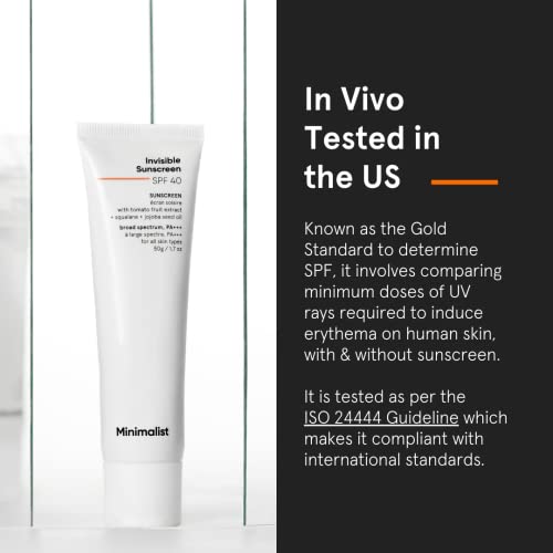 Minimalist UV Protection Invisible Sunscreen SPF 40 PA+++ for Oily Skin | | Ultra Light Sunscreen Gel with Matte Finish | Clinically Tested in USA (In-Vivo) | No White Cast | Sweat Resistant, Water Resistant | For Women & Men | 50 gm