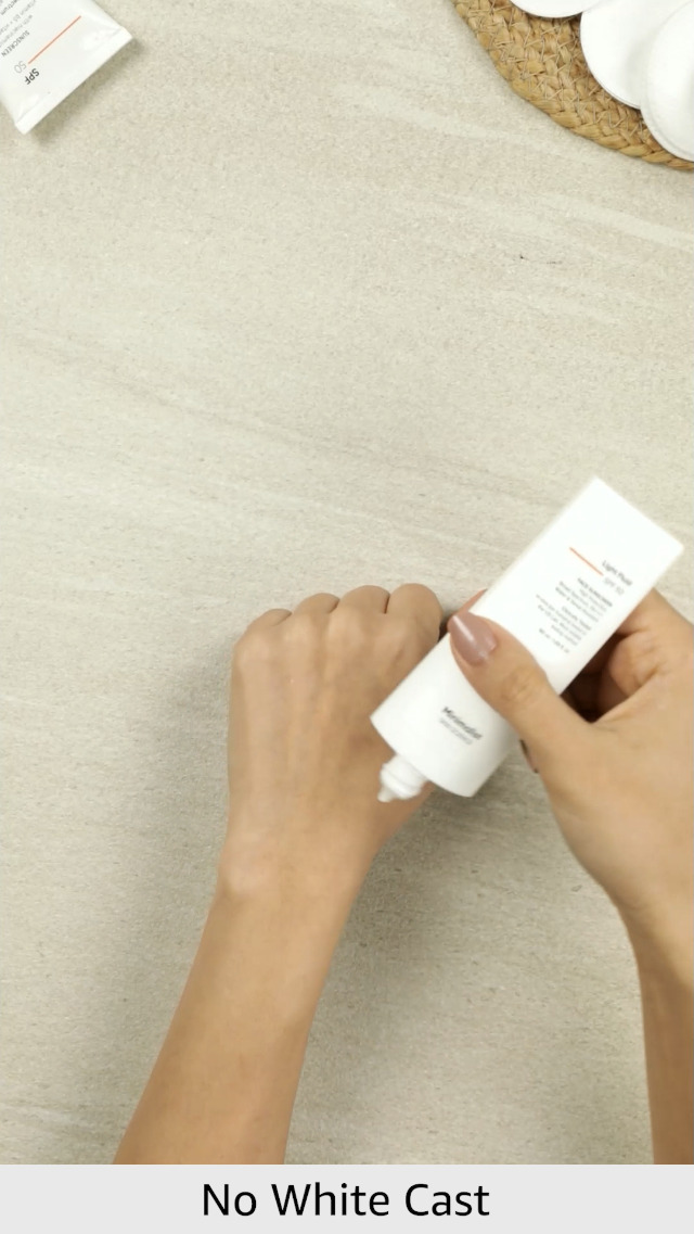 A light weight sunscreen. This broad spectrum SPF 50 with PA++++ rating has a very light texture that spreads easily & disappears leaving behind a natural moisturised non-shiny look.