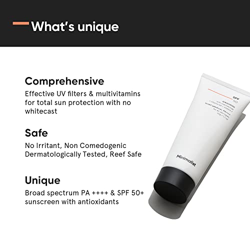 Minimalist Sunscreen SPF 50 PA++++ | Clinically Tested in US (In-Vivo) | Lightweight Cream with Multi-Vitamins | No White Cast | Broad Spectrum Niacinamide Sunscreen For Oily Skin, Dry Skin | For Women & Men | 50g (Pack of 1)