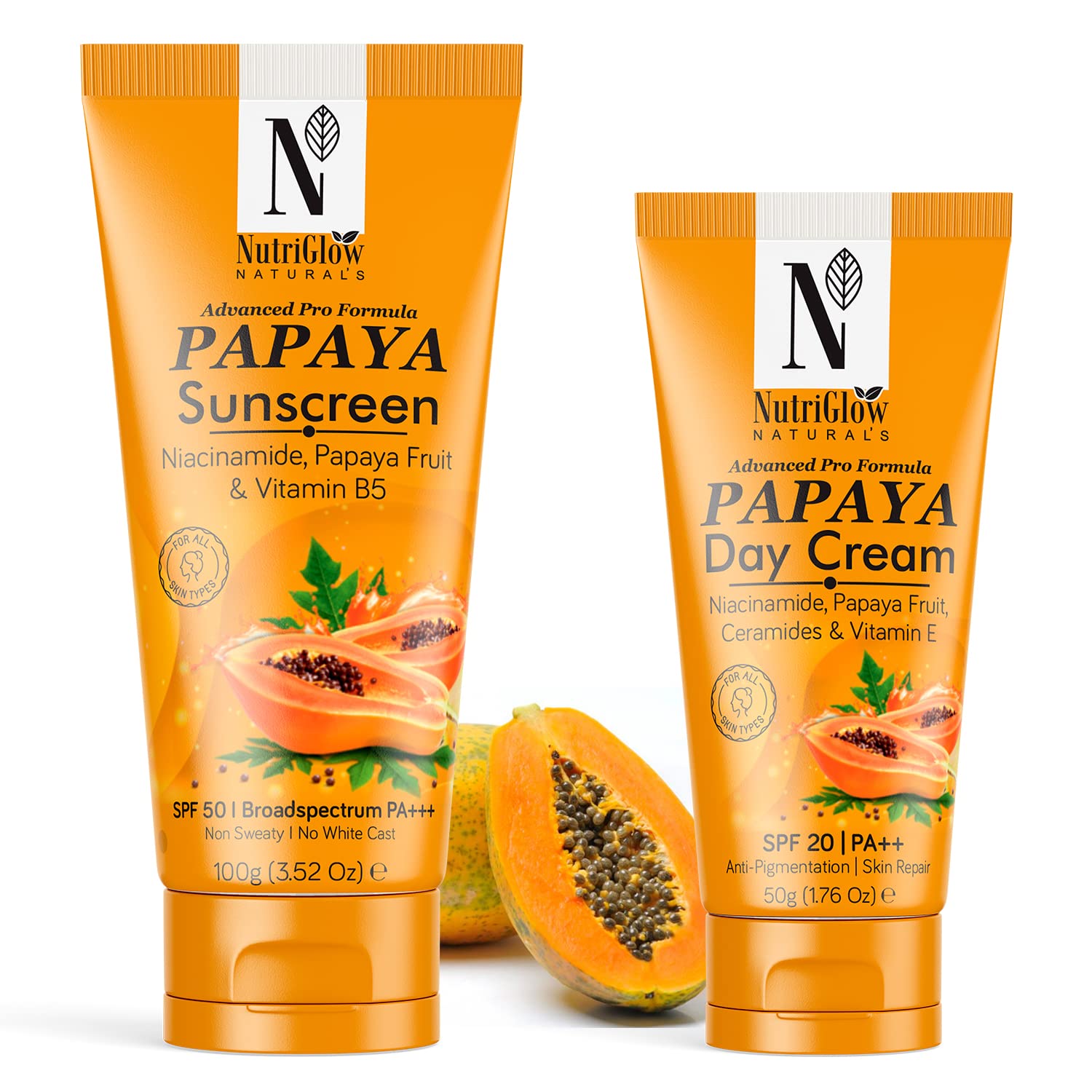 NutriGlow NATURAL'S Papaya Sunscreen SPF 50 (100gm) & Papaya Day Cream (50gm) for Radiant Glow