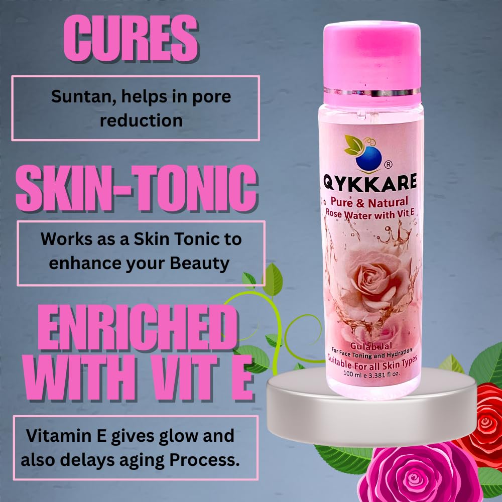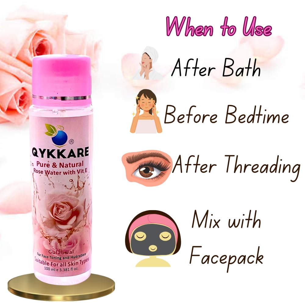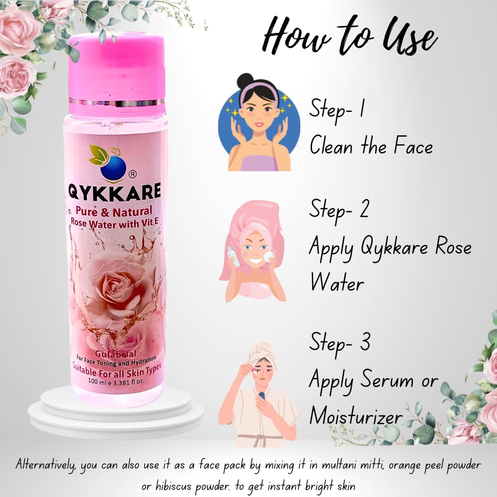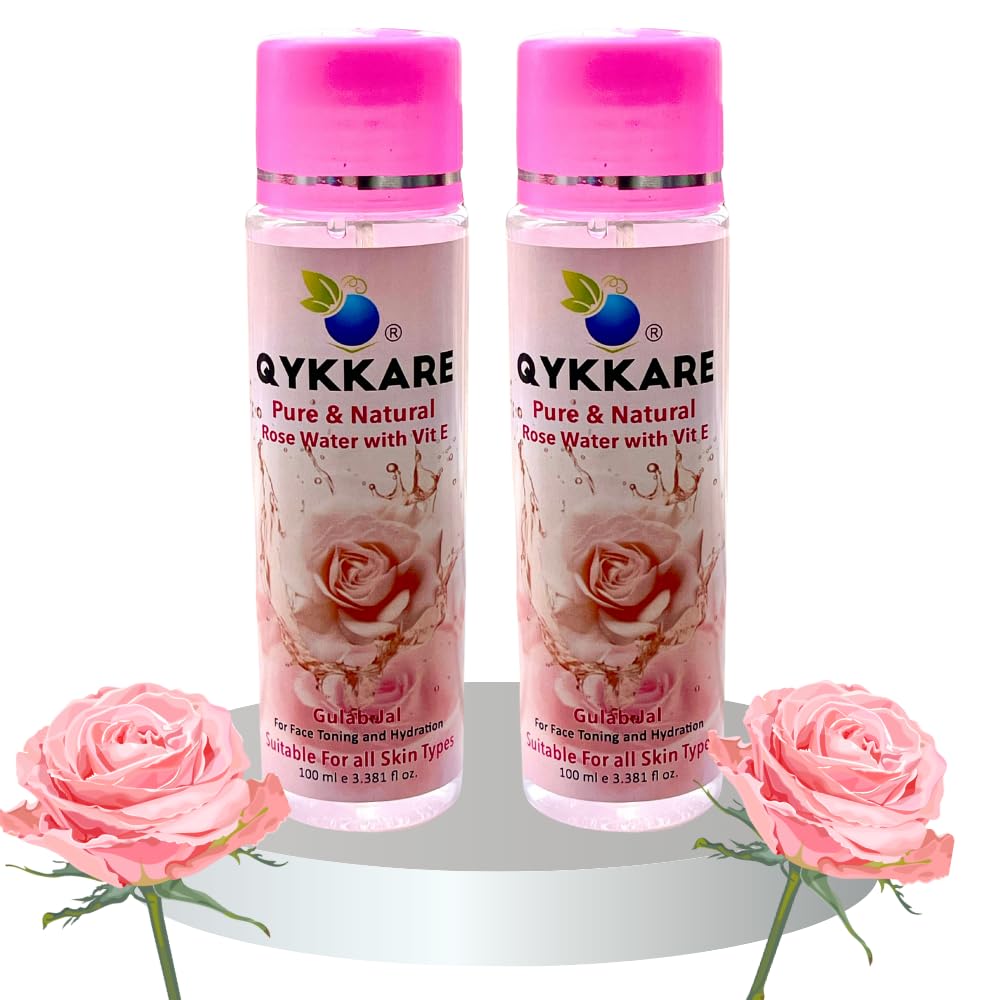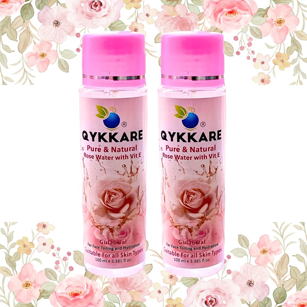 Qykkare Rose Water for Face Gulab Jal Facial Toner Mist Astringent for Skin Hydration Pack of 2 (200 ml)