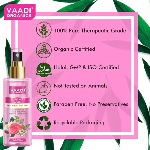 Vaadi Herbals Pvt. Ltd Pack Of 2 Rose Water - 100% Natural & Pure, 250 ml (Pack of 2)
