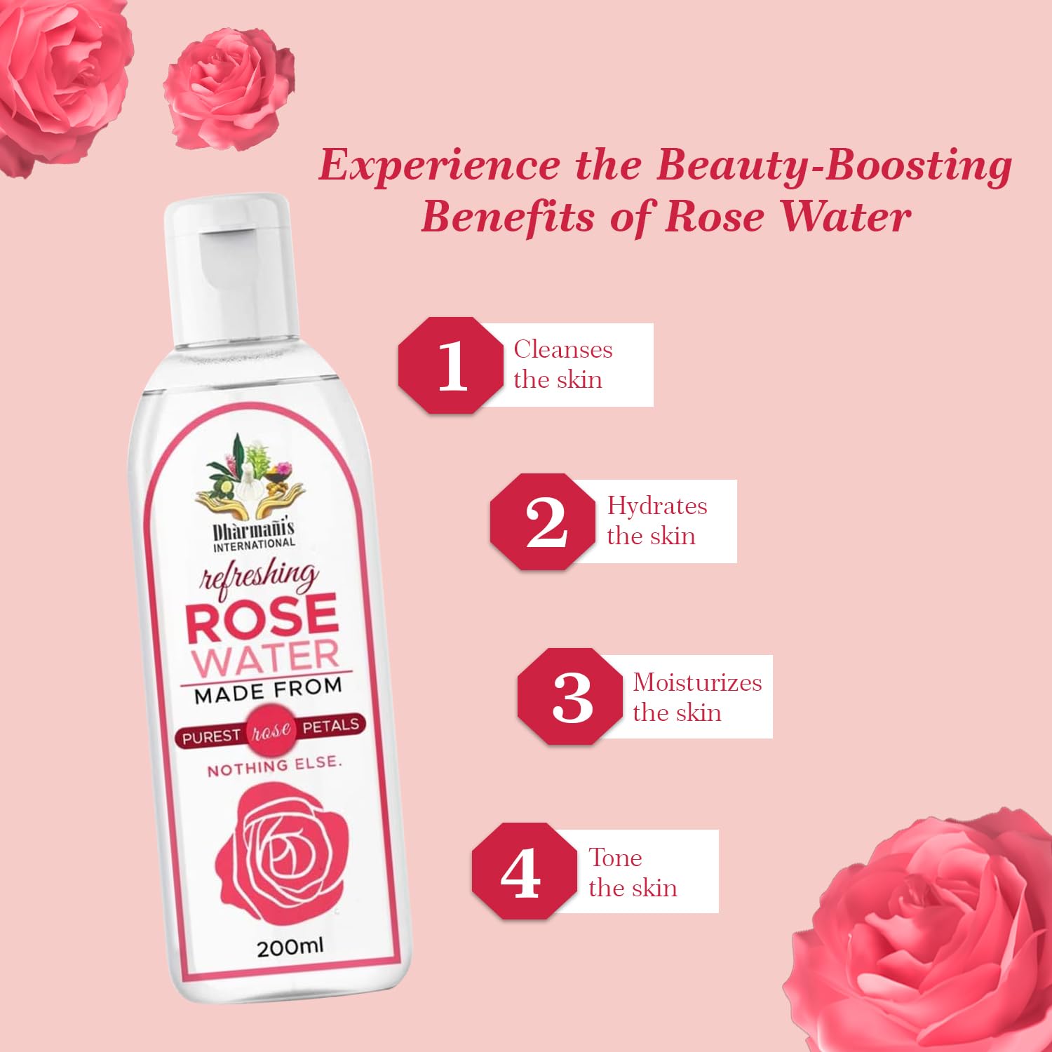 HomeBeautyFace CareTonersToners & MistsDharmani's International Pure and Natural Rose Water Face Toner | Skin Toner | Makeup Remover for Men and Women | Suitable for All Skin Types 200 ml