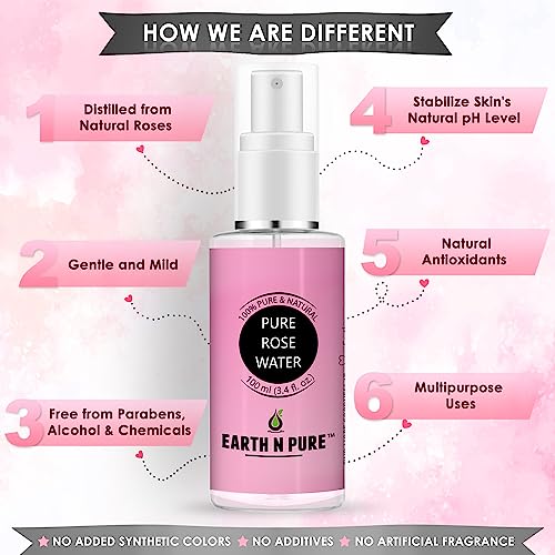 • CLEANER AND HIGH-QUALITY AFFORDABLE: At Earth N Pure our goal is to positively impact the lives of as many people as we possibly can by selling such a high quality product at an affordable price. Be sure while purchasing Earth N Pure Rose Water as it is p