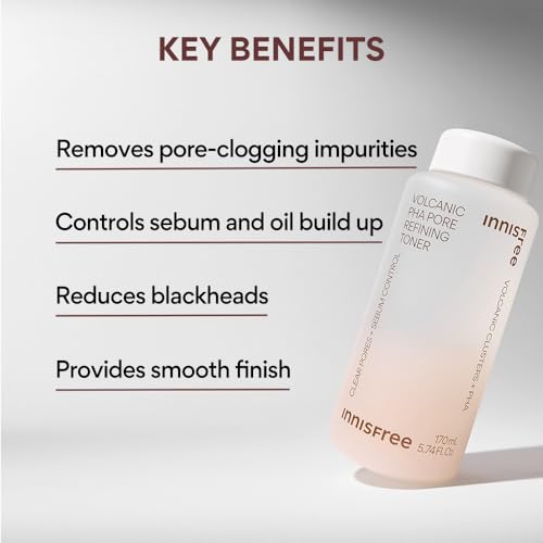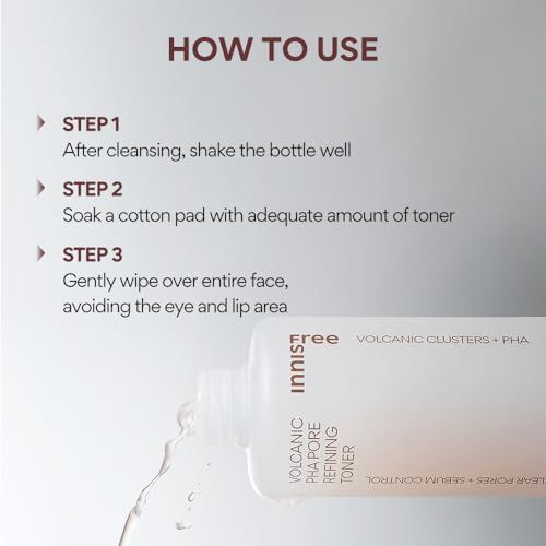 Innisfree Jeju Volcanic PHA Pore Refining Toner 170ml for Pore Smoothing - Reduces Blackheads & Oil build-up
