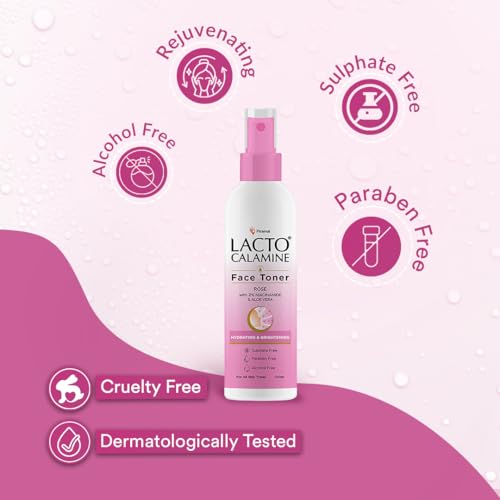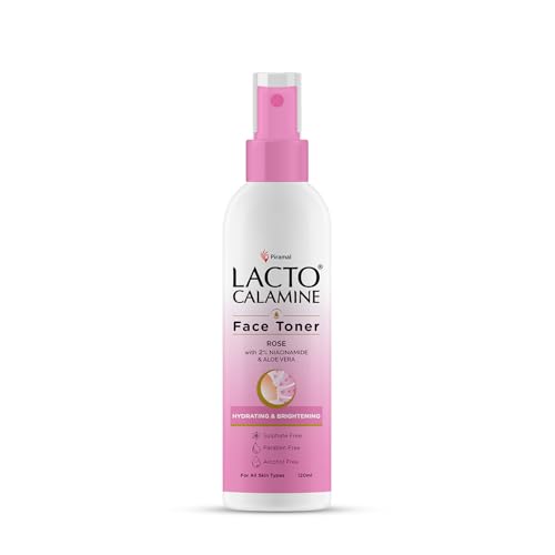 Lacto Calamine Rose Water Toner For Glowing Skin | 120ml | Gulab Jal Face Toner | Rosewater with Aloe Vera & 2% Niacinamide | Cleanses, Hydrates & Moisturises Skin | No Sulphate, Alcohol, & Parabens
