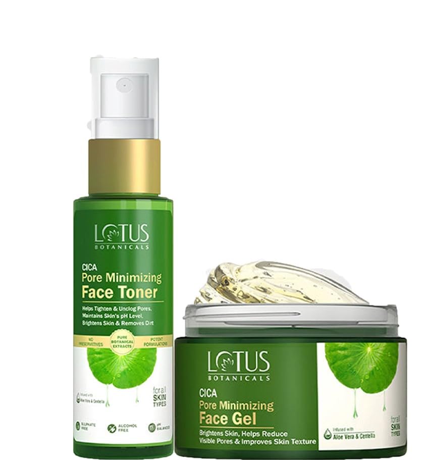 Lotus Botanicals brings you a power-packed skincare duo to help you achieve a radiant and flawless complexion. This set includes the Cica Pore Face Gel (50g) and Face Toner (50ml). The Cica Pore Face Gel is a lightweight non-greasy formula that deeply hydrates and nourishes your skin while minimizing the appearance of pores. It contains centella asiatica an ancient botanical known for its soothing and healing properties. The Face Toner is a gentle alcohol-free solution that removes impurities balances pH levels and preps your skin for better absorption of other skincare products. Together this dynamic duo helps control excess oil refine pores and reveal a smoother more radiant complexion. Suitable for all skin types this set is a must-have for your daily skincare routine.