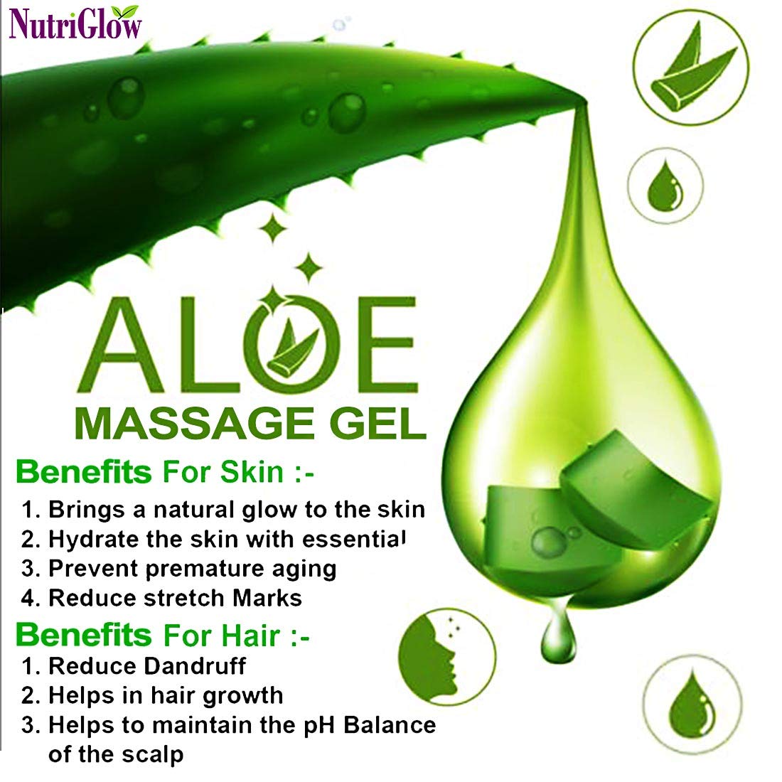 NutriGlow Combo of Skin Balancing Green Apple Toner (120ml) Aloe Vera Moisturizing Massage Gel For All Skin Types (100 G) Pack of 2(Toner + Aloe Vera Gel) 1x120ml + 1x100gm 120 ml (Pack of 2) combo