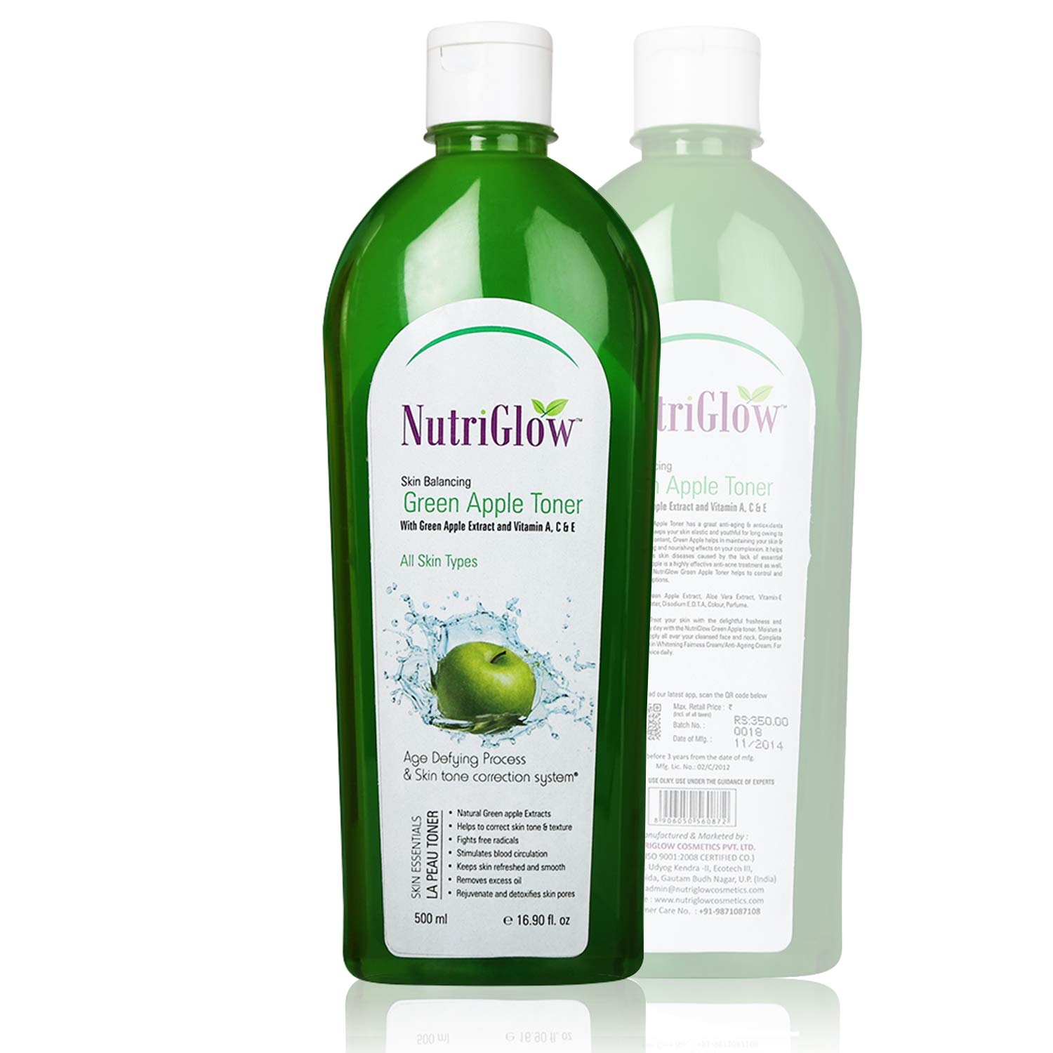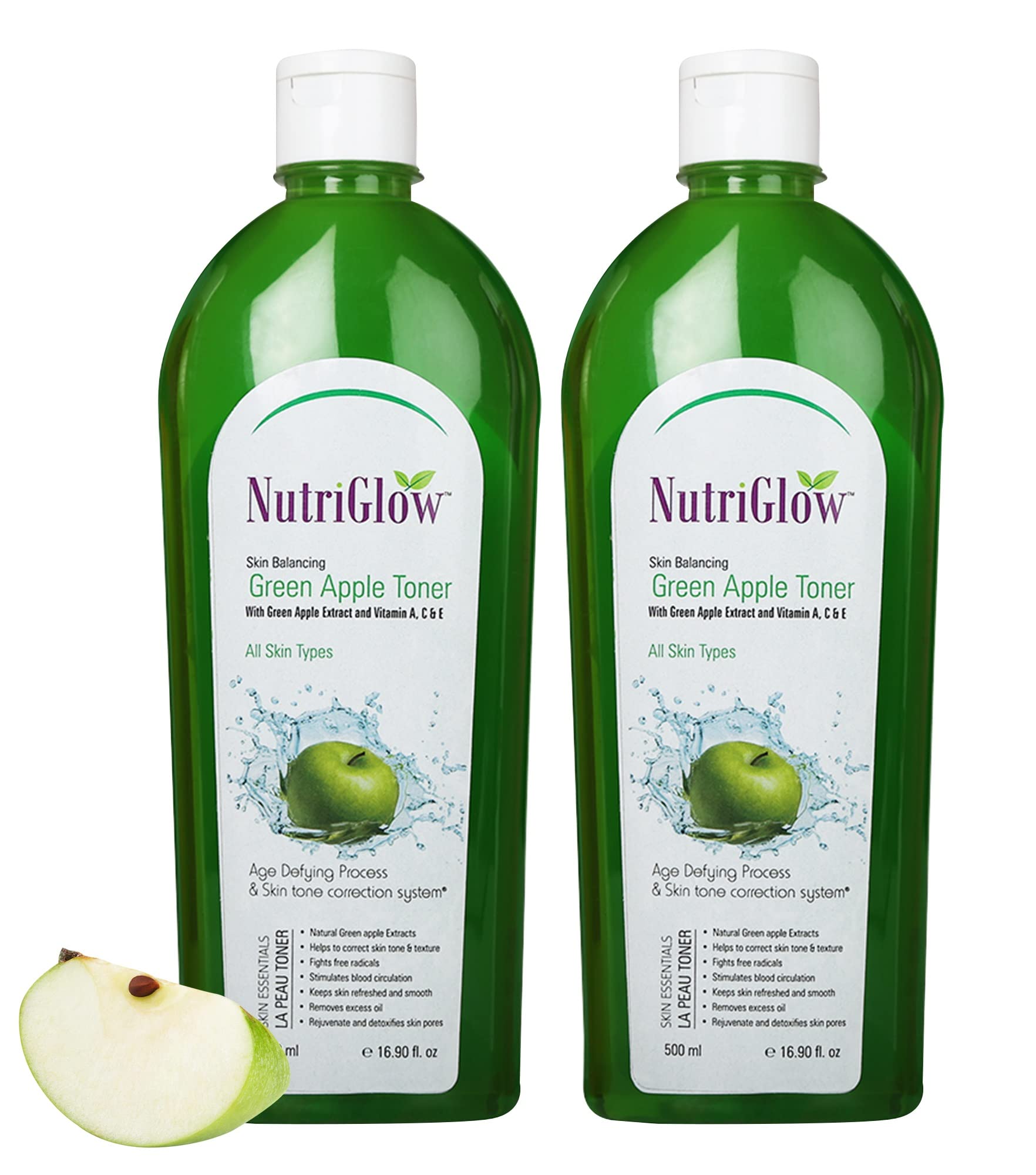 NutriGlow Green Apple Toner With Vitamin A C E Skin Care For Skin Protection Acne Pimple Reduce Sign Ageing Personal Care Tonic Unisex 500ml Each Pack of 2