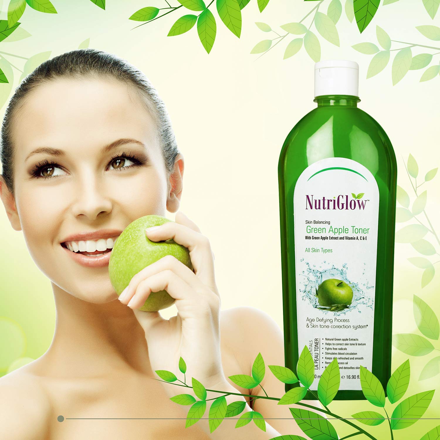 • REJUVENATES & REPLENISHES THE SKIN A dull skin tone is the result of overexposure to the sun. Enriched with Green Apple Extract NutriGlow Green Apple Facial Toner enhances your skins texture and reveals smooth radiant and younger-looking skin