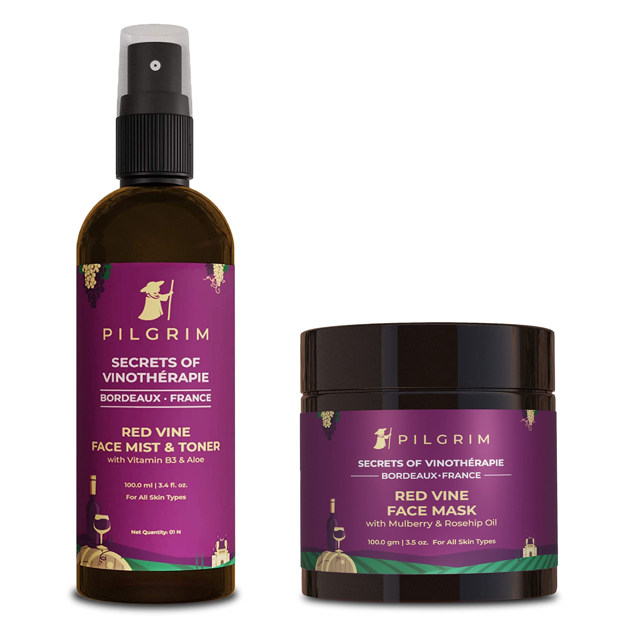 HomeBeautyFace CareTonersToners & MistsPilgrim Dewy Glow Face Combo with Skin Detoxifying Face Mask 100g & Face Hydrating Mist & Toner 100ml | Experience Youthful Glowing Skin | All Skin Type | Men & Women