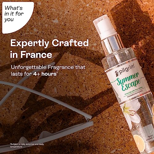 Pilgrim Summer Escape Body Mist (White Lily with yuzu lemon)| Citrus body mist for women long lasting| White lily & yuzu lemon for a vacation feel| Perfume for women| Designed in France| 150 ml