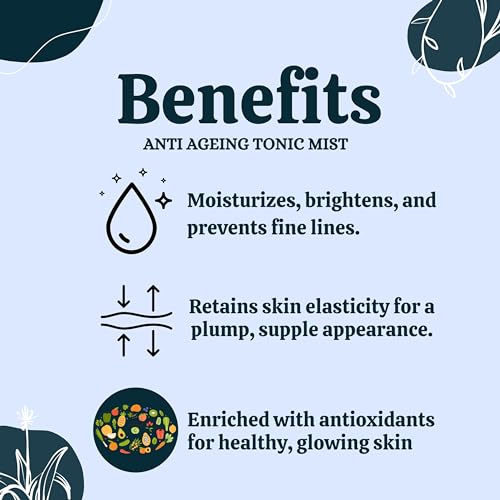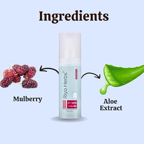Riyoherbs Anti aging tonic mist is a very lightweight toner that makes skin moisturise brightens skin tone and helps to prevent fine lines and early signs of ageing. This toner helps in retaining skin elasticity and increases the amount of collagen in your skin to make it more plump and supple. HOW TO USE Take Riyoherbs Anti Ageing tonic mist and spray it all over your face from a distance. Let it settle down itself for glowing and plump skin.