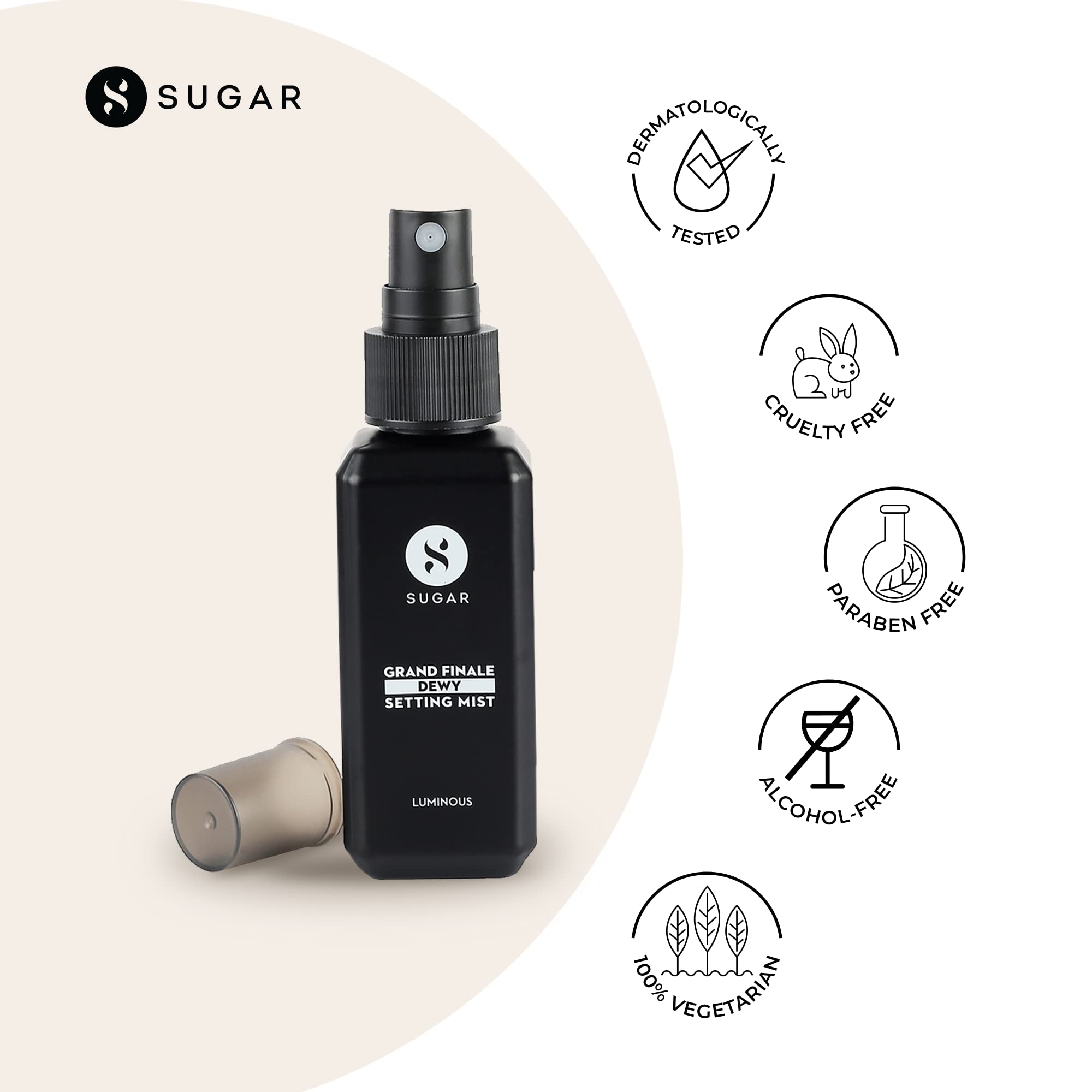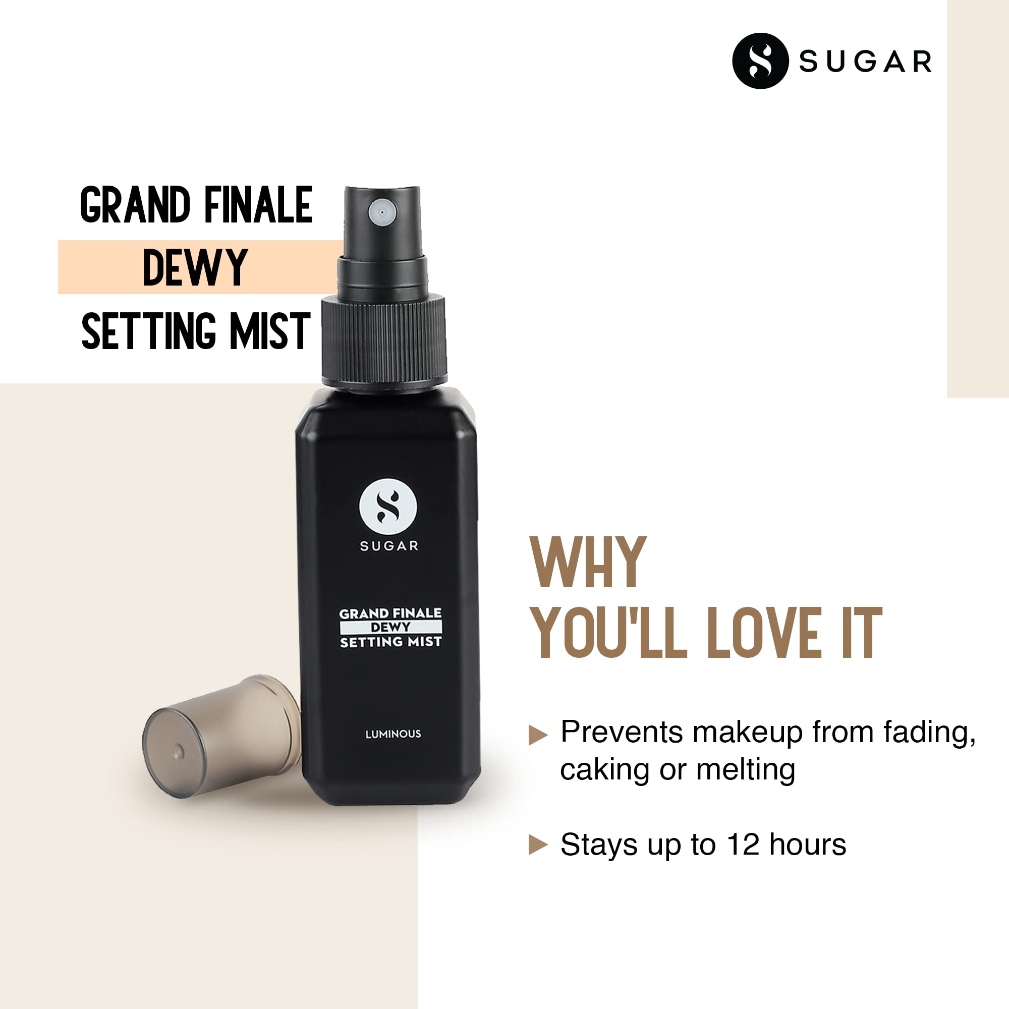 SUGAR Cosmetics Grand Finale Dewy 2 in 1 Setting Mist For Longlasting Makeup and Sun Protection | Paraben Free - 50 ml