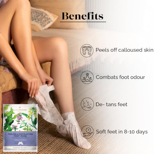 Luxaderm Peeling & Exfoliating Foot Mask = WOW! Smooth, soft feet after just one use! Easy to apply, no harsh scent. Like a spa treatment at home!