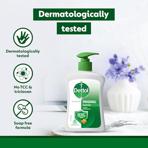 Be 100% sure to protect your skin from 100 illness-causing germs and bacteria. Use Dettol's Original Germ Protection Handwash Liquid Soap pH balanced formula every day and keep your hands hygienically clean and refreshed. This hand wash provides soft and rich lather leaving behind clean hands and mild pine fragrance. The trusted germ-protection modus operandi acts like a barrier between your hands and a wide range of unseen germs. The soap-free formula with glycerin makes sure to keep your skin moisturised while the plant derived cleansers help ensure thorough cleaning. Dettol handwash also contains more than 85% naturally derived ingredients with no TCC & Triclosan giving another healthy reason for hand washing whenever in need. Wash hands properly with Dettol and help keep your family healthy! Safety Information: Keep out of reach of children unless under adult supervision. Avoid direct contact with eyes. For external use. In case of contact with eyes rinse immediately with plenty of water. If persistent irritation occurs seek medical attention.