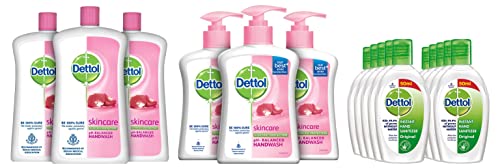 Dettol Liquid Handwash Refill Bottle & Original Germ Protection Alcohol based Hand Sanitizer, 50ml, Pack of 10 & Liquid Handwash Dispenser Bottle Pump - Skincare Moisturizing Hand Wash