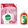 Dettol Liquid Handwash Refill - Skincare Moisturizing Hand Wash 1500 ml (Price offer) | Antibacterial Formula | 10x Better Germ ProtectionBe 100% sure to protect your skin from 100 illness-causing germs and bacteria. Use Dettol's Skincare Germ Protection Handwash Liquid Soap pH balanced formula every day and keep your hands hygienically clean and refreshed. This hand wash provides soft and rich lather leaving behind clean hands and fragrance. The trusted germ-protection modus operandi acts like a barrier between your hands and a wide range of unseen germs. The soap-free formula with glycerin makes sure to keep your skin moisturised while the plant derived cleansers help ensure thorough cleaning. Dettol handwash also contains more than 85% naturally derived ingredients with no TCC & Triclosan giving another healthy reason for hand washing whenever in need. Wash hands properly with Dettol and help keep your family healthy! Safety Information: Keep out of reach of children unless under adult supervision. Avoid direct contact with eyes. For external use. In case of contact with eyes rinse immediately with plenty of water. If persistent irritation occurs seek medical attention.Dettol Antiseptic Liquid for First Aid Surface Disinfection and Personal Hygiene 250mlDettol Antiseptic Liquid protects you and your family from 100 illness causing germs. It comes in a fresh pine fragrance. The topical antiseptic liquid sanitizes your home and helps maintain your personal hygiene. The Dettol first aid antiseptic liquid can be used to protect against infection from cuts and scratches disinfect toys and sanitize baby wear leaving everything clean and fresh. It can also be used as a household disinfectant and cleaner on surfaces or in laundry cleaning to kill germs. This liquid antiseptic is recommended by Indian Medical Association and can be kept in your emergency first aid kit. USAGE: Recommended dilutions to protect your family from germs: Bathing â 5ml to a bucket of water (10 litres); First Aid- 15ml to 300ml of water; Shaving Antiseptic Liquid- 15ml to 300ml of water; Nappy Wash â 12.5ml to 500ml of wate
