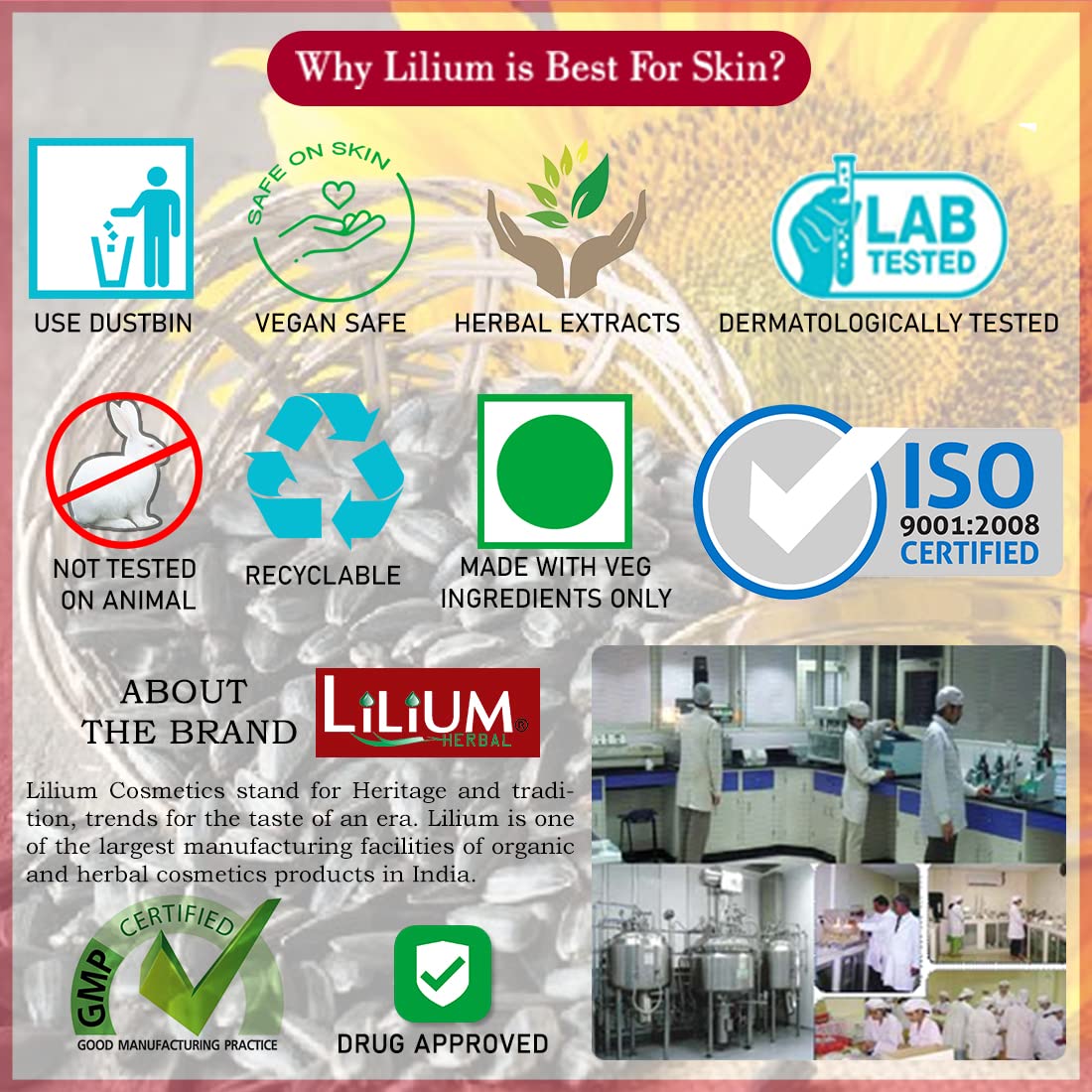 Sunflower Oil has excellent nourishing properties that helps to hydrate and moisturize dry hands and feet. Also this oil creates a protective shield on your skin to helps against sun damage.