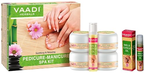 VAADI HERBALS Nail and Cuticle Oil with Jojoba Oil, 10ml & Soothing and Refreshing Pedicure Manicure Spa Kit, Cream and Oil Set, 135g
