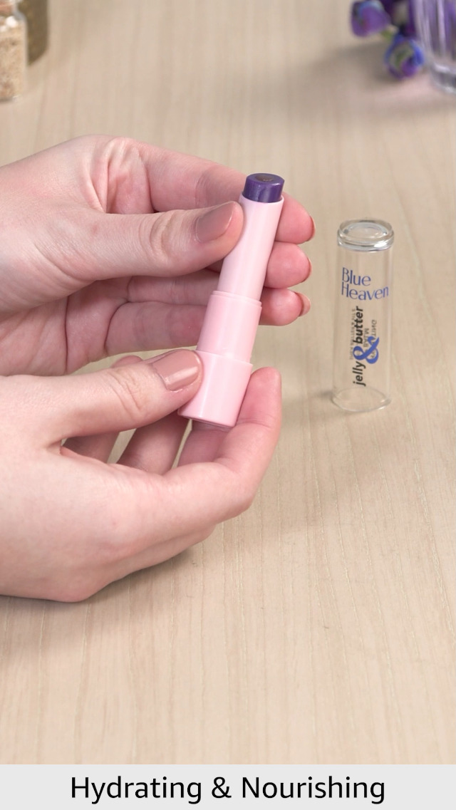 Discover the ultimate in lip care with Blue Heaven ph based Jelly & Butter Lip Balm formula reacts your natural pf that gives you custom shade that are unique to you. Infused with the nourishing power of Vitamin E Jojoba Oil and Shea Butter this lip balm delivers intense hydration and protection for your lips. Its smooth non-greasy formula glides on effortlessly providing long-lasting moisture and a subtle healthy shine. Perfect for all skin types this dermatologically tested balm ensures your lips stay soft supple and beautifully conditioned throughout the day.
