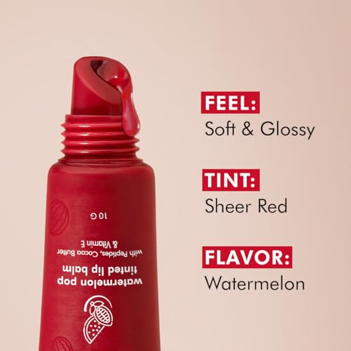 mCaffeine Lip Juice Tinted Lip Balm - Watermelon POP | 24 hrs Moisturization | With Peptides Cocoa Butter & Vitamin E | Heals Dry & Chapped Lips | Lip Balm For Women | Sheer Red Tint - 10g