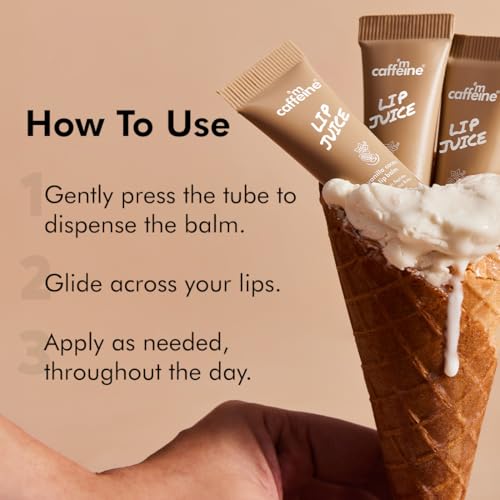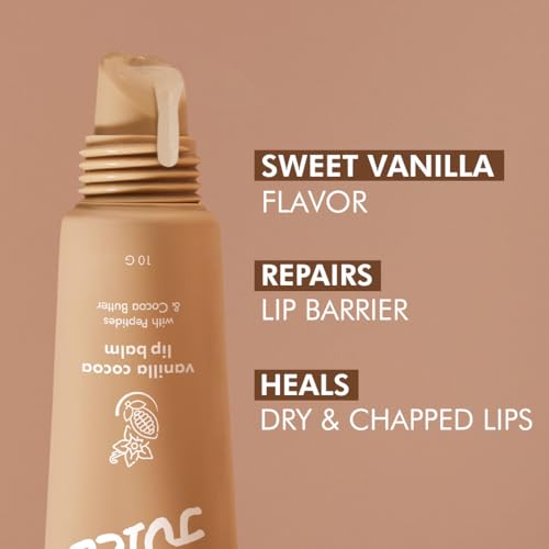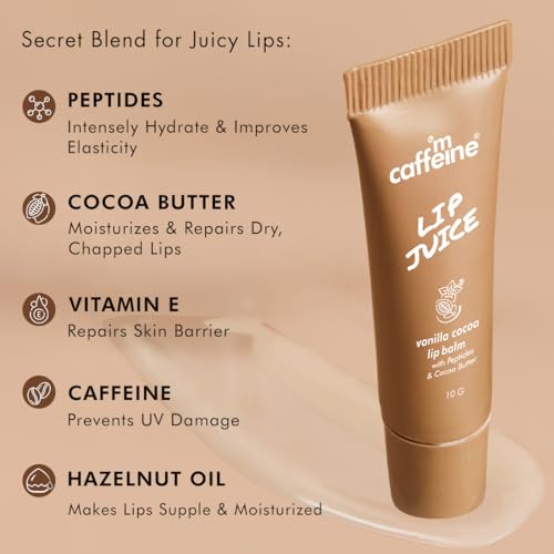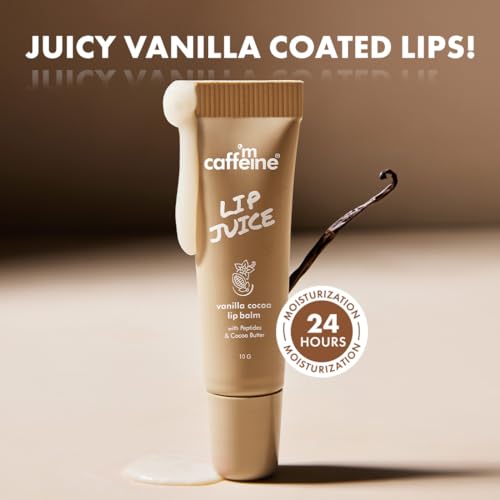 mCaffeine Lip Juice Vanilla Cocoa Lip Balm | 24 hrs Moisturization | Sweet Vanilla Flavor | With Peptides, Cocoa Butter & Vitamin E | Heals Dry & Chapped Lips | Lip Balm For Men & Women - 10g