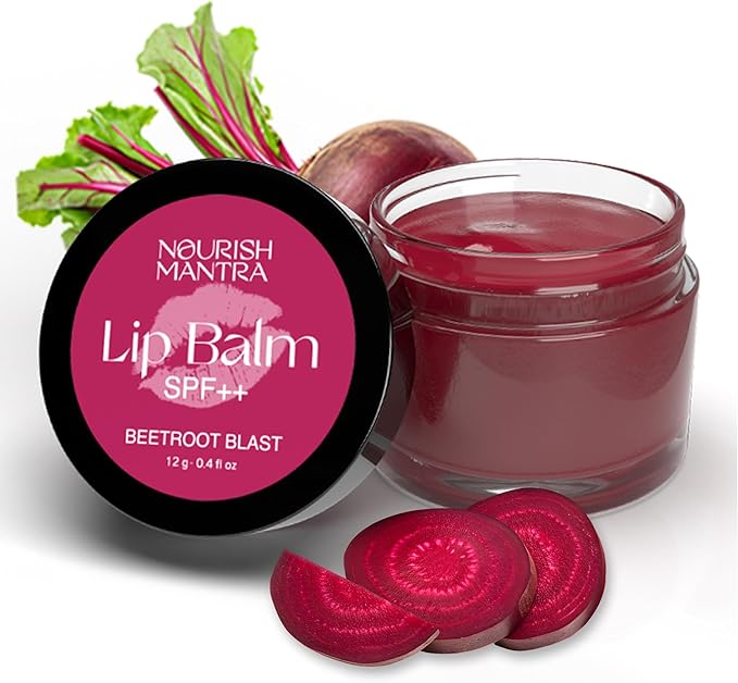 HomeBeautyLipsLip BalmNourish Mantra - Beetroot Lip Balm with SPF | Made with Olive oil, Shea Butter, Vitamin E and Avocado Oil | For Dry, Chapped & Dark Lips | Best for Both Women and Men | 12g
