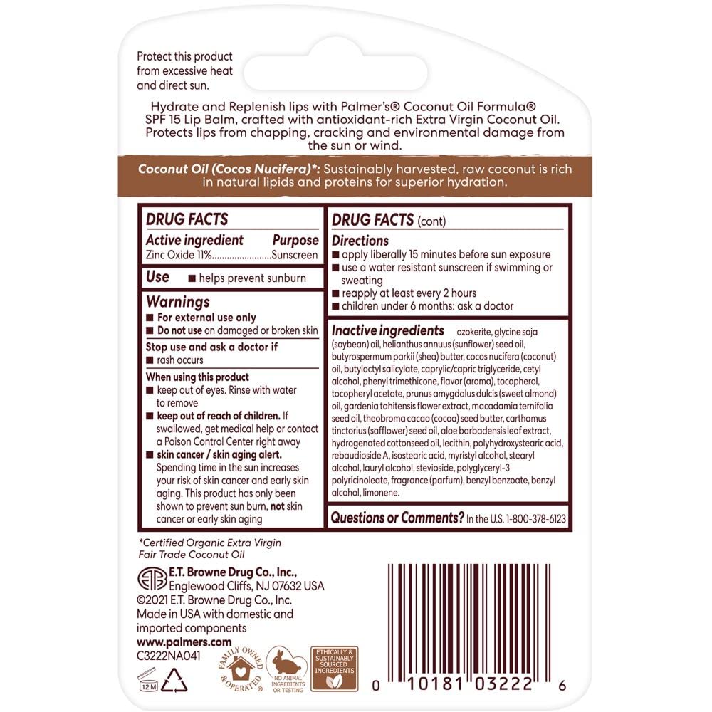 With Pure Coconut & Tahitian Monoï this ultra-hydrating balm drenches lips in luxurious moisture providing unsurpassed radiance & softness. Palmer’s pure Coconut Oil plus Vitamin E with SPF protection moisturizes dry chapped lips for 24 hours. No Parabens Phthalates Mineral Oil Sulfates or Dyes.
