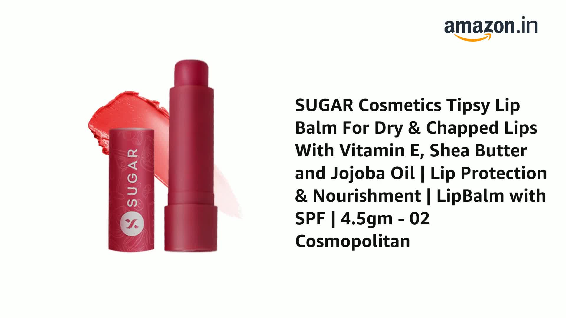 SUGAR Cosmetics Tipsy Lip Balm For Dry & Chapped Lips With Vitamin E, Shea Butter and Jojoba Oil | Lip Protection & Nourishment | LipBalm with SPF | 4.5gm - 02 Cosmopolitan