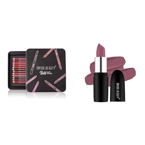 SWISS BEAUTY Bold Matt Lip Liner | Set of 12 | Long-lasting |Matte Finish | Non-drying 15gm & Bold Matt Lip Liner | Set of 12 | Long-lasting |Matte Finish | Non-drying 15gm