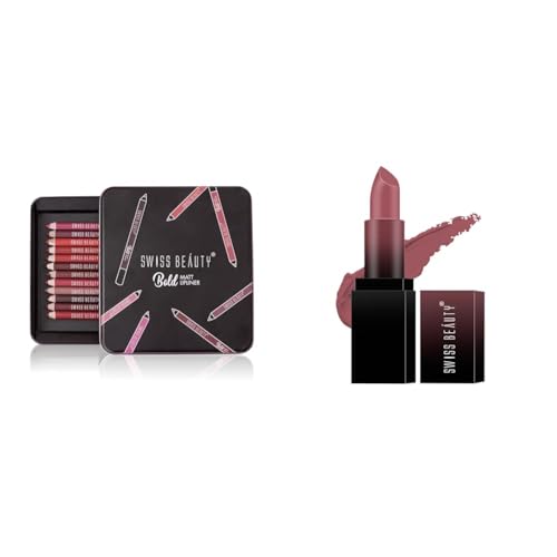 SWISS BEAUTY Bold Matt Lip Liner | Set of 12 | Long-lasting |Matte Finish | Non-drying, 15gm & Bold Matt Lip Liner | Set of 12 | Long-lasting |Matte Finish | Non-drying, 15gm
