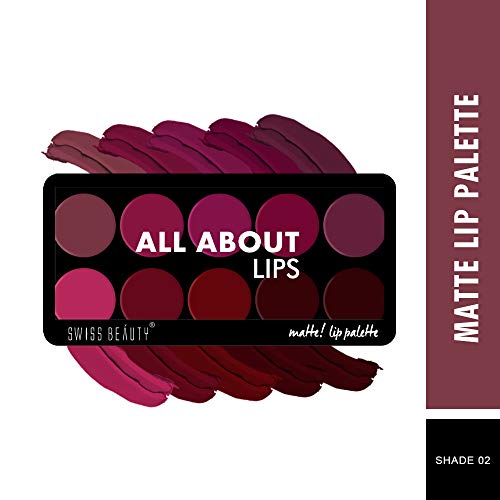 Swiss Beauty Bold Matte Lipliner Pencil Set | Long Stay | Smudge Free | Waterproof | Creamy Lip Liner Pencil| Multi Color (1.6g x12) Pack Of 12The product comes in safe package. The product will be an excellent pick for you.Swiss Beauty All about Lip Palette with 10 Pigmented colors |Creamy Matte Finish Lip Colors Lipstick |Travel Friendly Lip Palette | Multicolor-02 12 gm |The product comes in safe package. The product will be an excellent pick for you.