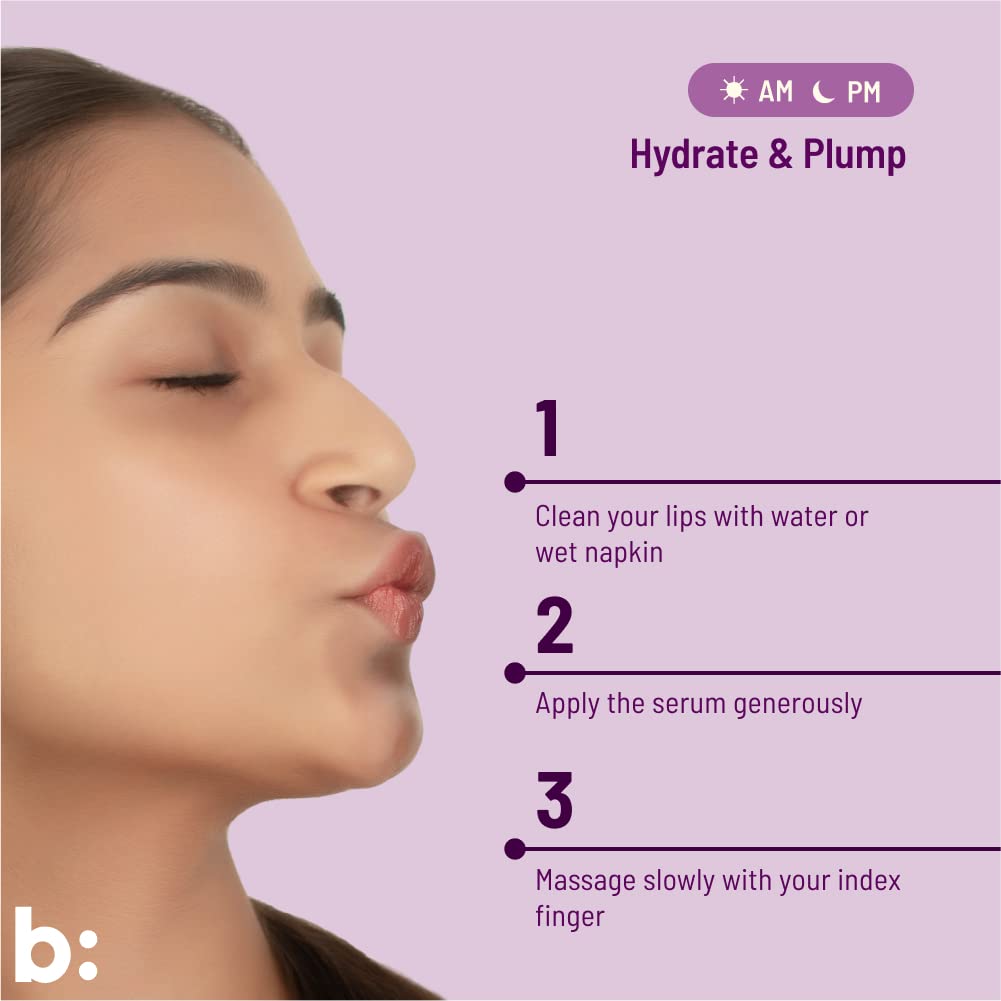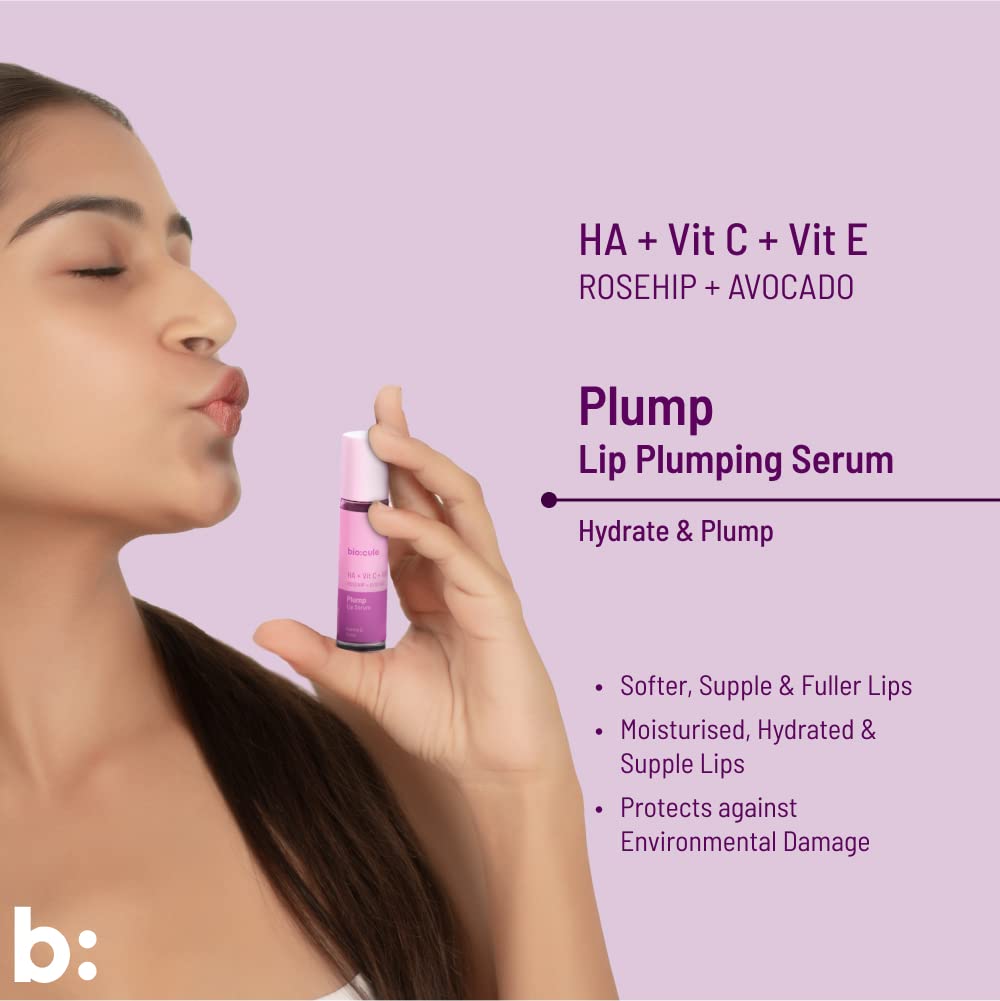 biocule Plump Lip Serum for Lip Plumping Glow & Hydration | with Hyaluronic Acid Vitamin C & Vitamin E from Rosehip & Avocado | Lip Oil Roll-On for Men & Women | 100% Natural 10ml