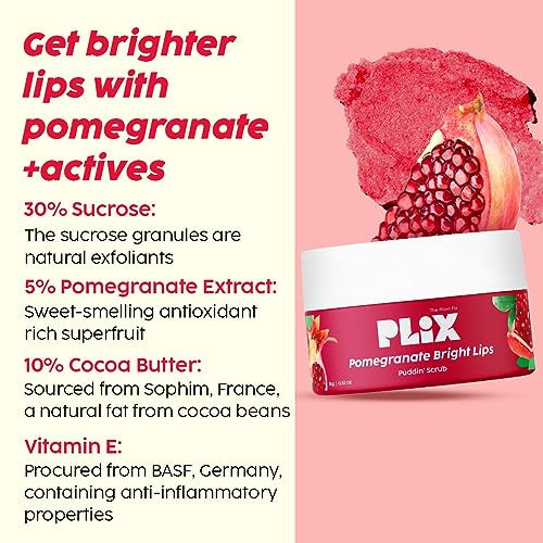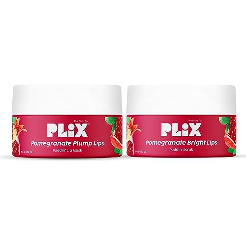 PLIX - THE PLANT FIX Pomegranate Lip Care Combo, Exfoliating Scrub and Plumping Lip Mask For Dark, Dry & Chapped Lips | Cocoa Butter & Chiuri Butter, Vitamin C & E | (15 + 15) gms