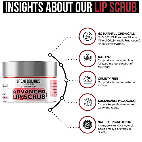 THIS REVIEW IS ABOUT URBAN BOTANICS ADVANCED LIP SCRUB .This lip scrub has tiny particles which helps with the pigmentation in lips . This lip scrub is a all in one product it covers the entire lip care range . You won't need a lip balm after this .The texture of this scrub is pigmented and hence after the scrub process the lip will have a pink shade left behind . There is a mild pleasing fragrance added to it . It is infused with walnut shell and brown sugar providing brighter and lighter lips .The sugar granules are soft and will not be harsh on your lips. Brown sugar is a great exfoliater compared to normal sugar . It revitalize the dead skin cells and will help with pigmentation . This advanced lip scrub ia the best way to provide love to your lips and to keep them healthyJust take a little bit of the scrub and massage it well in the lips for about a minute and then wipe it off with wet towel . You can see the rosy shade and brighter lips after every use . Use this scrub weekly twice . Do not over exfoliate . This product could last long it comes in a safe packaging . It's very picket friendly and travel friendly . The best affordable lip scrub you could buy .