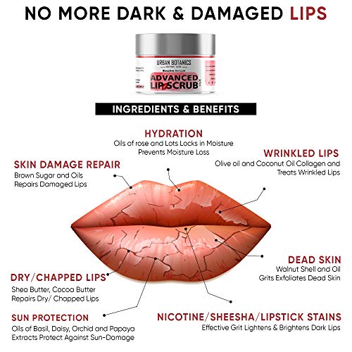 UrbanBotanics® Advanced Lip Scrub Balm - Lightening and Brightening Dark Lips - Lip Scrub For Women & Men Smoker/Dry/Chapped Lip Care (Color : Red), 40 Grams