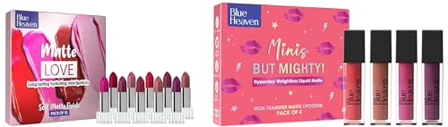 HomeBeautyLipsLipstickBlue Heaven Matte Love Mini Lipsticks & Blue Heaven Minis But Mighty Hyperstay Weightless Liquid Matte Lipstick For Women- Bridesmaid Nude Shade Kit- Pack of 4