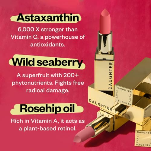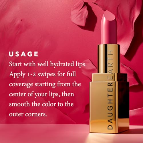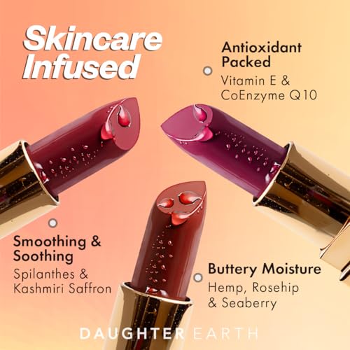 100% Vegan Lipsticks that contain Clean Lip Color pigments with bold and comfortable velvet lipstick finish. Our phytonutrient weightless velvet lipsticks are truly power-infused makeup and work very well with Daughter Earth Lip & Cheek Tints. Made with clinically proven actives that are cryogenically and supercritically extracted to transfer maximum botanical footprint into the formula by blending Ayurvedic lipstick wisdom with modern biochemistry.