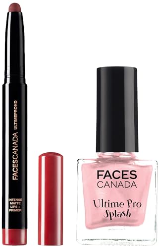 FACESCANADA Ultime Pro Splash Glossy Finish Nail Enamel - Pink Twinkle 149 (8Ml) & Faces Canada Ultime Pro Hd Intense Matte Lipstick + Primer - Crushed Berry (Red)