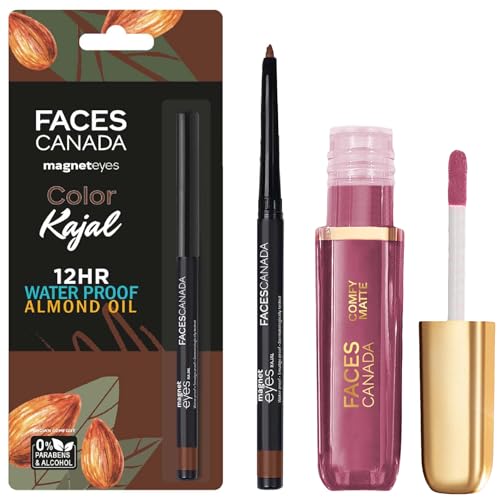FACESCANADA Comfy Matte Liquid Lipstick - Truth Be Told 09 (Nude), Magneteyes Color Kajal - Brown Comfort 03