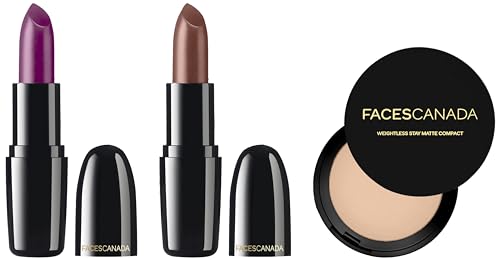 FACESCANADA Weightless Creme Lipstick - Sweet Mocha, Imperial Plum, Stay Matte Compact Powder Ivory, 9G & 4G