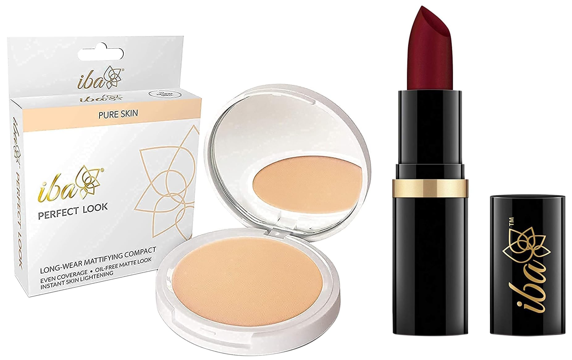 Iba Halal Care Pure Lips Moisturizing Lipstick Shade A72 Maroon Burst 4gIba is proud to present India's first range of vegan lipsticks which are 100 percent free of pig fat lanolin carmine other animal based ingredients and harmful preservatives such as parabens. Instead find lip loving ingredients like shea butter coconut oil aloe vera and vitamin e in our rich and creamy lipsticks.Iba Halal Care Perfect Look Long Wear Mattifying Compact 02 Medium Shell 9gIba perfect look long-wear mattifying compact offers you oil-free fresh look with instant skin lightening and brightening benefits. Spf 15 formula protects skin from sun damage and darkening. Vitamin e provides nourishment and youthful radiance. Dermatologically tested. Suitable for everyday use.