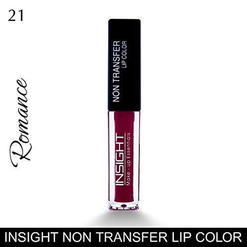Insight Non Transfer Lip Color 4ml (06 Angel Red)INSIGHT introduces a range of super creamy matte lipstick's that glide on seamlessly to deliver a soft matte finish. Each shade from this range features a highly pigmented formula and delivers a high colour pay off in just one application. Super long wearing this lip colour does not fade and stays put all day long.Insight Non Transfer Lip Color 4ml (21 Romance)INSIGHT introduces a range of super creamy matte lipstick's that glide on seamlessly to deliver a soft matte finish. Each shade from this range features a highly pigmented formula and delivers a high colour pay off in just one application. Super long wearing this lip colour does not fade and stays put all day long.