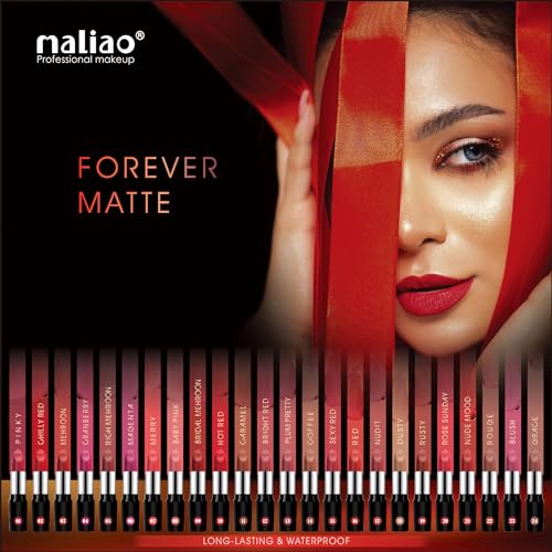 Elevate your lip game with Maliao's Forever Matte Lipstick â a beauty essential that combines lasting matte brilliance with waterproof wonder. This lipstick is more than a cosmetic; it's a statement of enduring beauty. Experience all-day confidence with our matte formula that effortlessly stays put ensuring your lip color withstands every moment from morning meetings to evening adventures. The Forever Matte Lipstick offers more than just color; it provides intense color payoff giving your lips a vibrant and bold look. Choose from a spectrum of versatile shades ranging from striking reds to subtle nudes allowing you to express your style with every swipe. We understand the importance of comfort in beauty and that's why our matte lipstick is infused with nourishing ingredients. Enjoy a comfortable wear that keeps your lips feeling as good as they look. Make your lips the canvas for your daily expression with Maliao's Forever Matte Lipstick â where lasting beauty meets vibrant style in every shade.