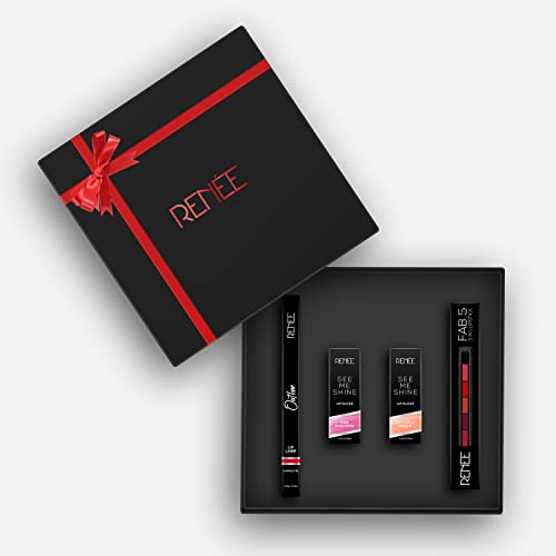 RENEE Fab Look Makeup Kit Combo| Includes Fab 5 Lipsticks, Black Kajal & Lip Glosses| Best Gifts for Girlfriend, Wife, Women