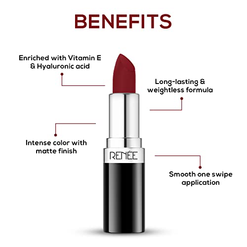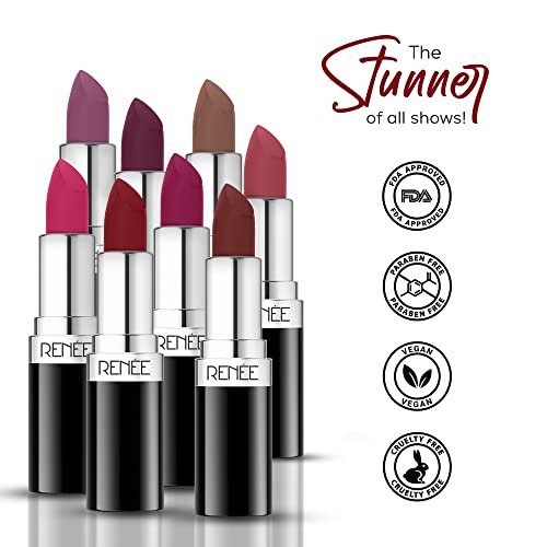 Power-up your pout with stunner! Be a showstopper wherever you go with RENEE Stunner Matte Lipsticks. Formulated to indulge you into vibrant and long-lasting lip color experience our weightless and highly pigmented lipstick is specially crafted to deliver a bold matte finish that stays put for long without smudging or fading. RENEE Stunner Matte Lipstick‘s velvety texture glides effortlessly onto your lips providing an even and intense coverage with just one swipe along with the goodness of Hyaluronic acid and Vitamin E which helps keep your lips soft and moisturized. Say goodbye to constant touch-ups and flash your beaming smile in an array of shades that complement every mood and occasion.