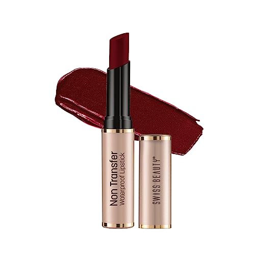 Swiss Beauty Non-Transfer Waterproof Lipstick with Jojoba Seed Oil | Matte Finish | Long-Lasting | Highly Pigmented | Shade- Dark Brown 3gmThe matte long-lasting texture gives you pout-worthy lips in one stroke. It effortlessly on your lips giving you a gorgeous soft matte finish. Plush pigment-rich formula | intense colour pay-off | smooth textured stroke application | luxurious effortless glide | soft matte finish.Swiss Beauty Non-Transfer Waterproof Lipstick with Jojoba Seed Oil | Matte Finish | Long-Lasting | Highly Pigmented | Shade- Royal Maroon 3gmThe matte long-lasting texture gives you pout-worthy lips in one stroke. It effortlessly on your lips giving you a gorgeous soft matte finish. Plush pigment-rich formula | intense colour pay-off | smooth textured stroke application | luxurious effortless glide | soft matte finish.