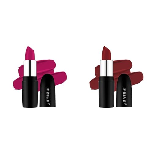 Swiss Beauty Pure Matte Lipstick | Long Lasting Hydrating & Lightweight Lipstick | Velvet Maroon 3.8gm|Swiss beauty pure matte lipstick gives a matte finish on your lips. Exquisitely smoothing. It's like a colour infused fountain of youth for your lips. Instantly drenches lips in perfect locks it in for endless comfort. Infused with advance skin care ingredients the formula appeared in fine lines and helps lips look fuller.Swiss Beauty Pure Matte Lipstick | Long Lasting Hydrating & Lightweight Lipstick | Hot Red 3.8gm|Swiss Beauty pure matte lipstick gives a matte finish on your lips. Exquisitely smoothing. It's like a colour infused fountain of youth for your lips. Instantly drenches lips in perfect locks it in for endless comfort. Infused with advance skin care ingredients the formula appeared in fine lines and helps lips look fuller.