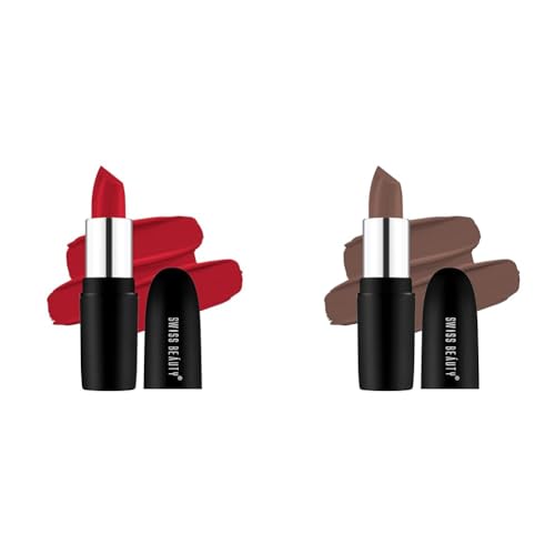 Swiss Beauty Pure Matte Lipstick | Long Lasting Hydrating & Lightweight Lipstick | Russian Red 3.8gm|Swiss Beauty pure matte lipstick gives a matte finish on your lips. Exquisitely smoothing. It's like a colour infused fountain of youth for your lips. Instantly drenches lips in perfect locks it in for endless comfort. Infused with advance skin care ingredients the formula appeared in fine lines and helps lips look fuller.Swiss Beauty Pure Matte Lipstick | Long Lasting Hydrating & Lightweight Lipstick | Caramel 3.8gm|Swiss Beauty pure matte lipstick gives a matte finish on your lips. Exquisitely smoothing. It's like a colour infused fountain of youth for your lips. Instantly drenches lips in perfect locks it in for endless comfort. Infused with advance skin care ingredients the formula appeared in fine lines and helps lips look fuller.